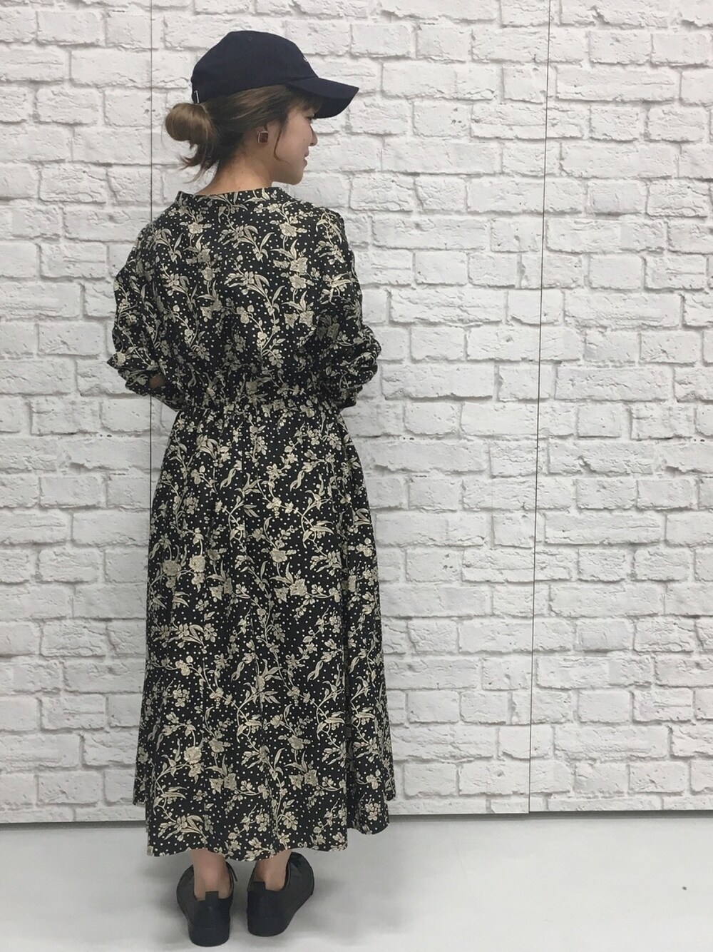 リバティワンピース👗✨ 前あきなので羽織としても使える万能アイテム👍 キャップ×スニーカーで外してカジュアルコーデにしました😝