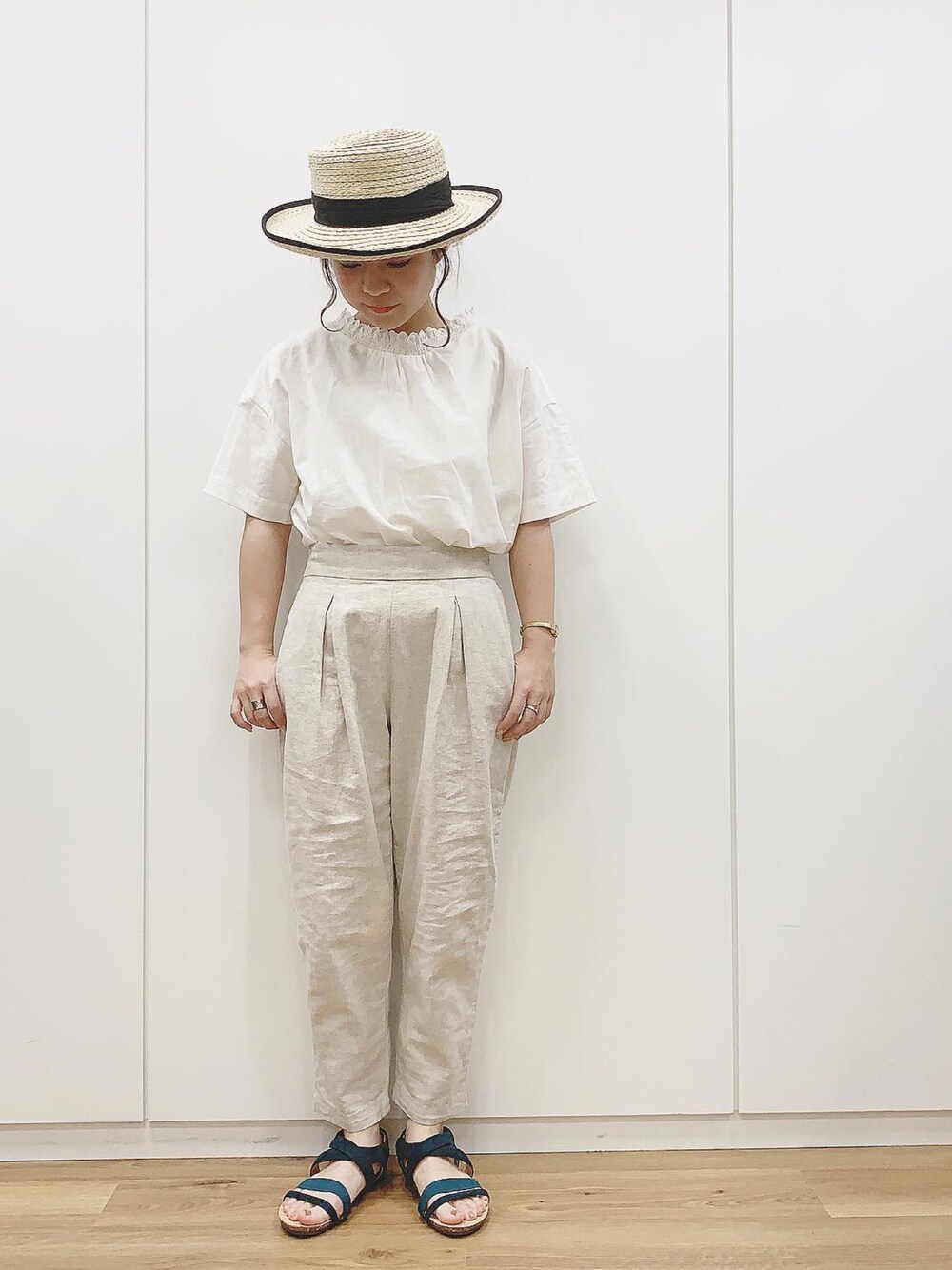 studio CLIP saito(studio CLIP 本部)のハット「ロールアップカンカン帽」を使ったコーディネート