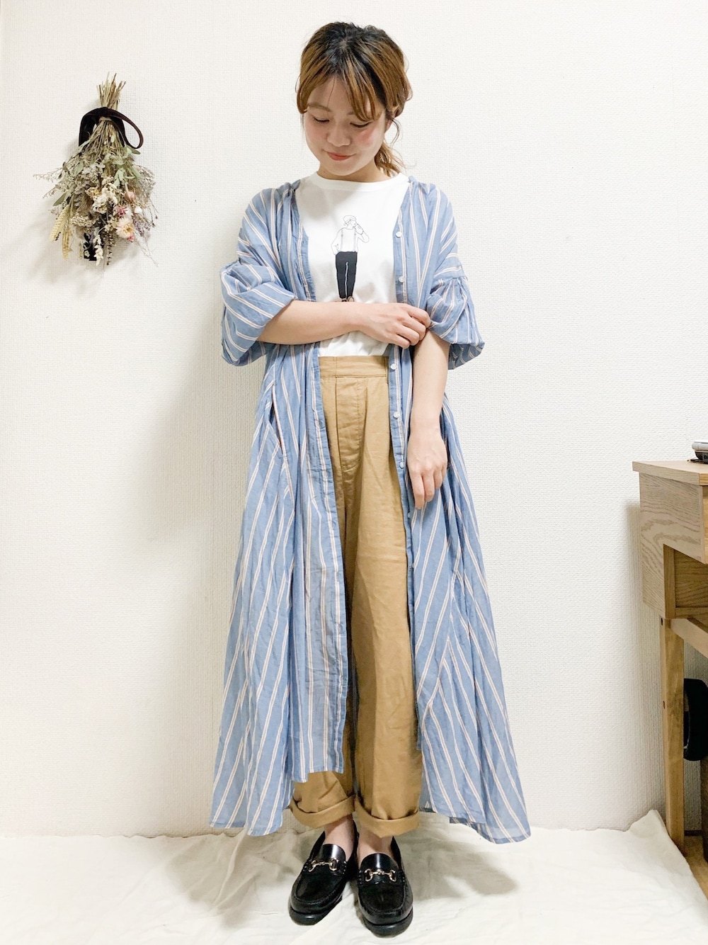 ストライプワンピースを羽織りとして◯ 薄手なのでこれからの季節にもピッタリです。