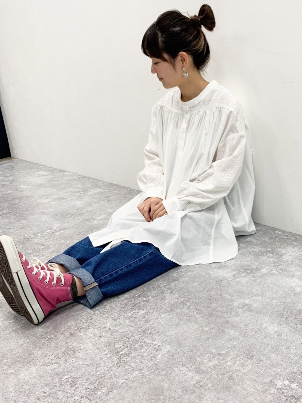 studio CLIP saito(studio CLIP 本部)のシャツ/ブラウス「Wフロント刺繍チュニックブラウス」を使ったコーディネート