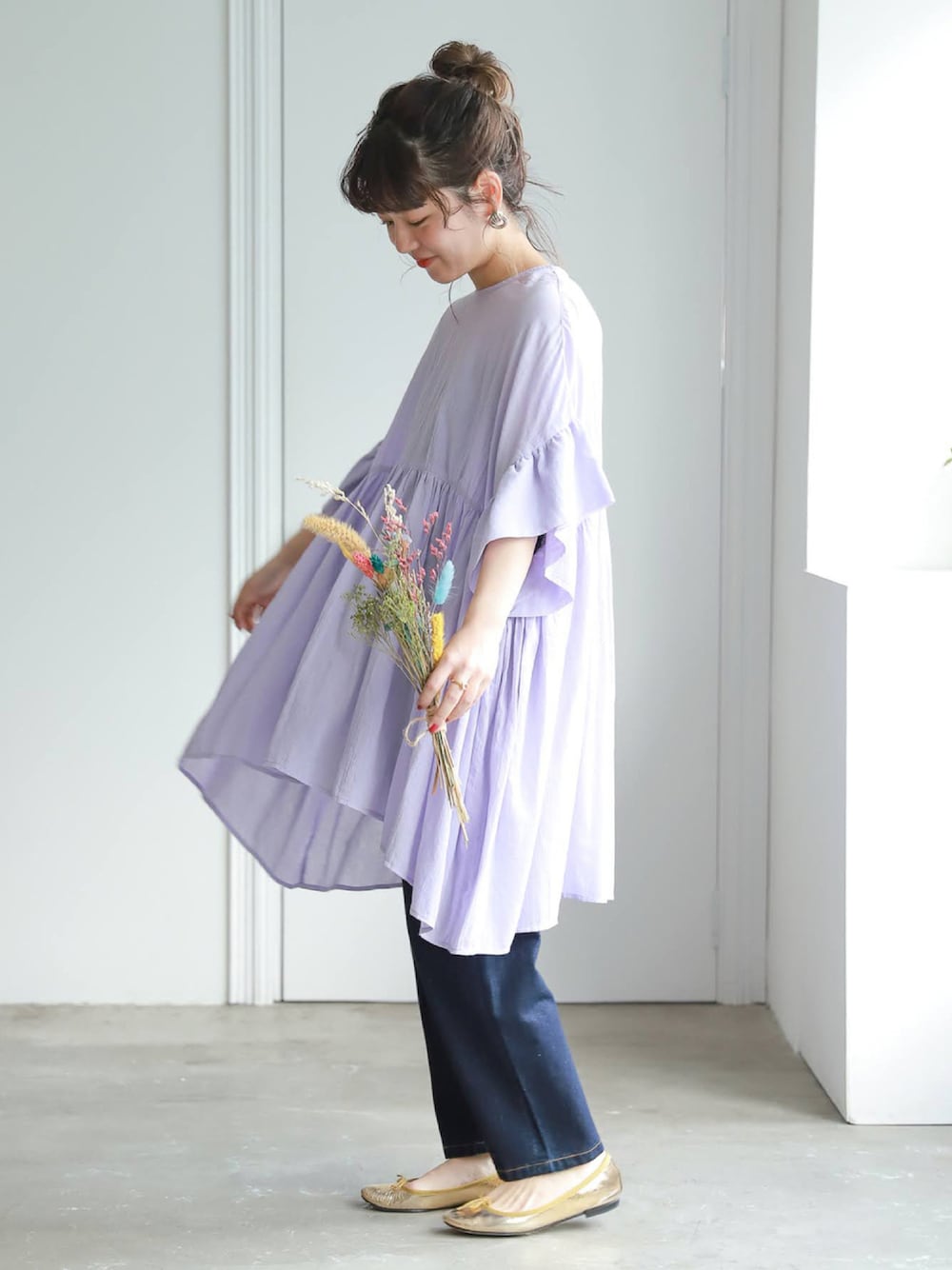 studio CLIP saito(studio CLIP 本部)のシャツ/ブラウス「【低身長向けアイテム/WEB限定】ギャザーワイドチュニック」を使ったコーディネート