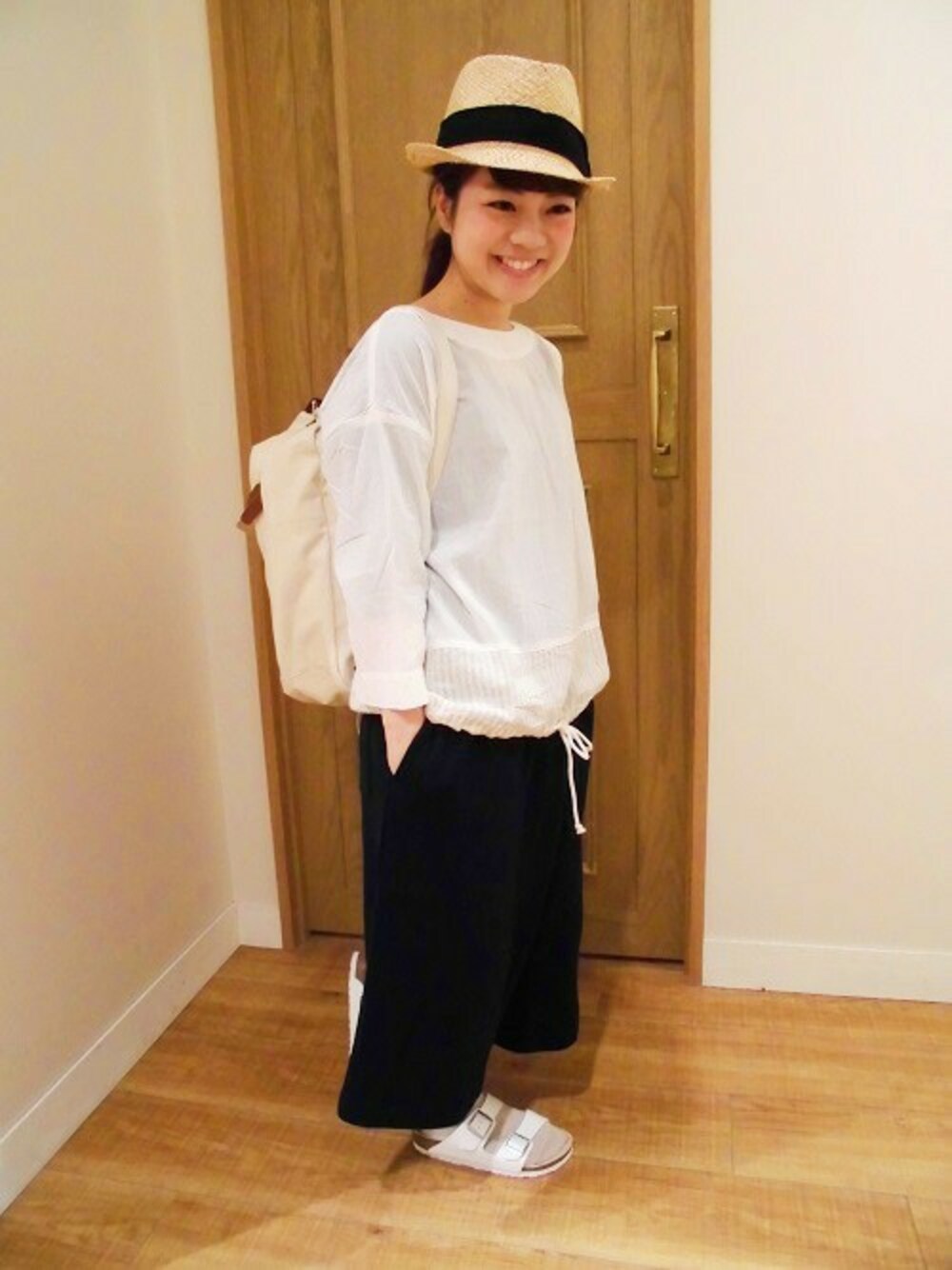 【studio CLIP スタッフスタイリング】 店舗名:アルカキット錦糸町店 白い爽やかなブラウスと、今年流行りのワイドパンツ初夏をイメージしたコーディネートです。 足元には靴下にビルケンシュトックを合わせて、今年っぽさを出してみました。 ブラウスは裾が絞れる為、ワイドパンツと合わせてもスッキリ着る事が出来ます。
