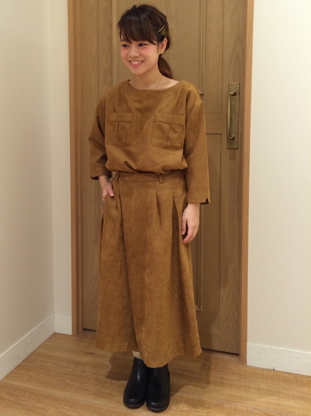 studio CLIP saito(studio CLIP 本部)のシャツ/ブラウス「フェイクスエード半袖プルオーバー」を使ったコーディネート