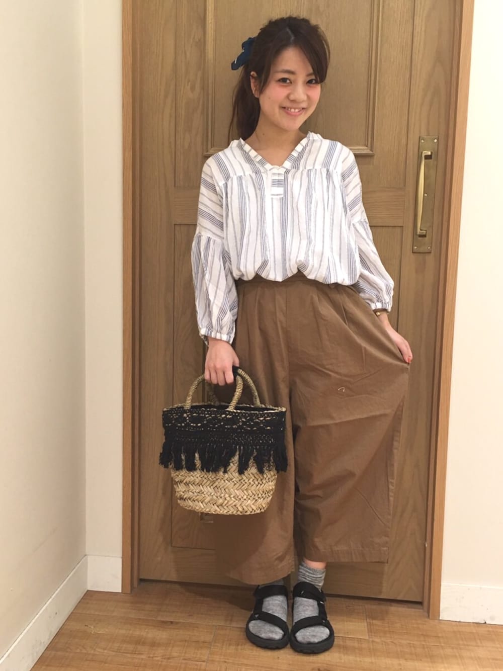こんばんは🌜 4月ですね!🌸 ブラウスはコットンレーヨンなのでサラッとしてて着心地◎です!!袖口にゴムがはいってるので夏にはまくしあげても使えます😋 ウエストインで合わせるのがおすすめです! 去年大人気だったTEVAは今年も大活躍間違いなし!今年は白も取り扱いございます!! 白もゲットしました〜👡