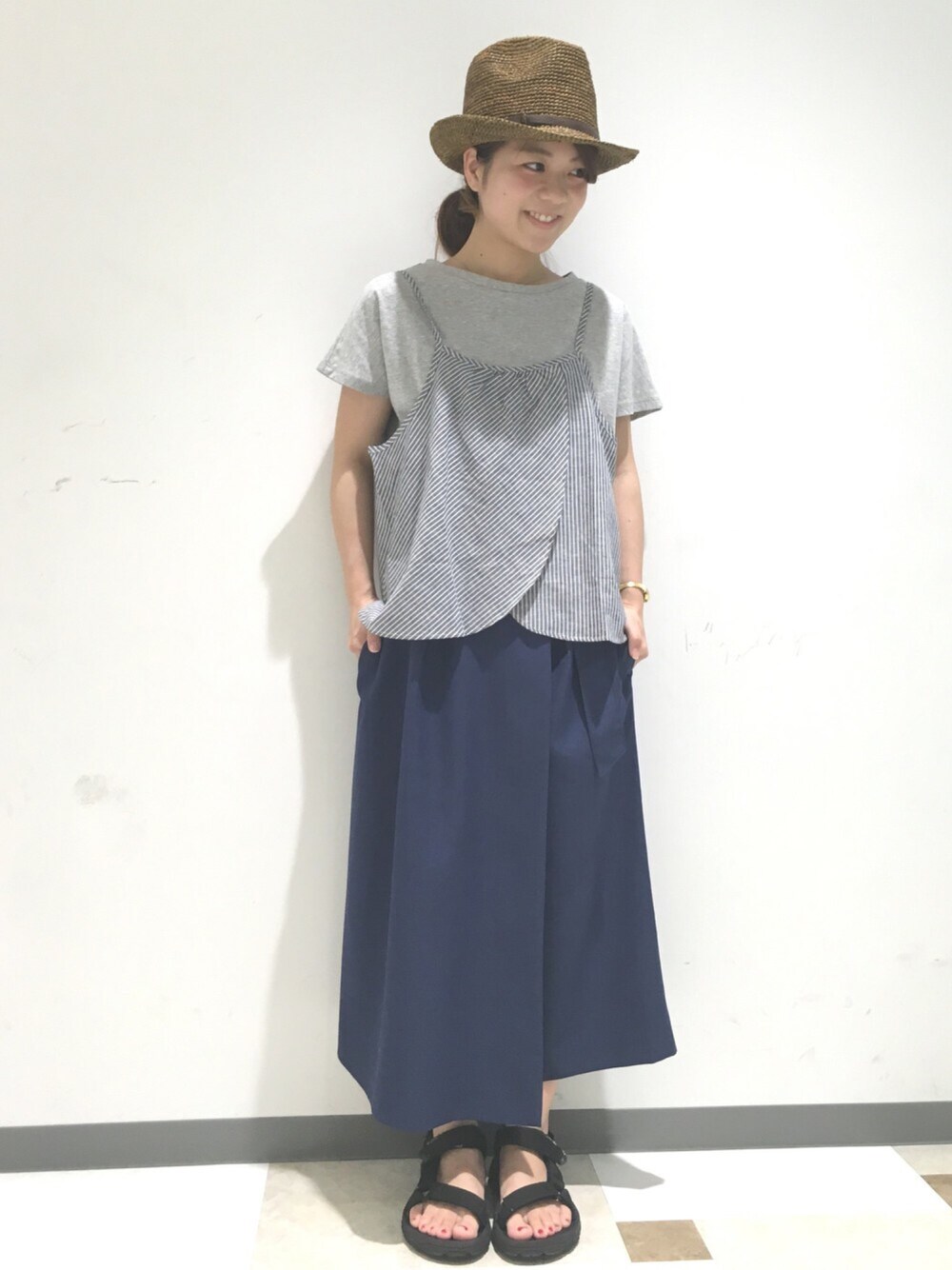 studio CLIP saito(studio CLIP 本部)のTシャツ/カットソー「コットンリネンストライプキャミソール+Tシャツセット」を使ったコーディネート