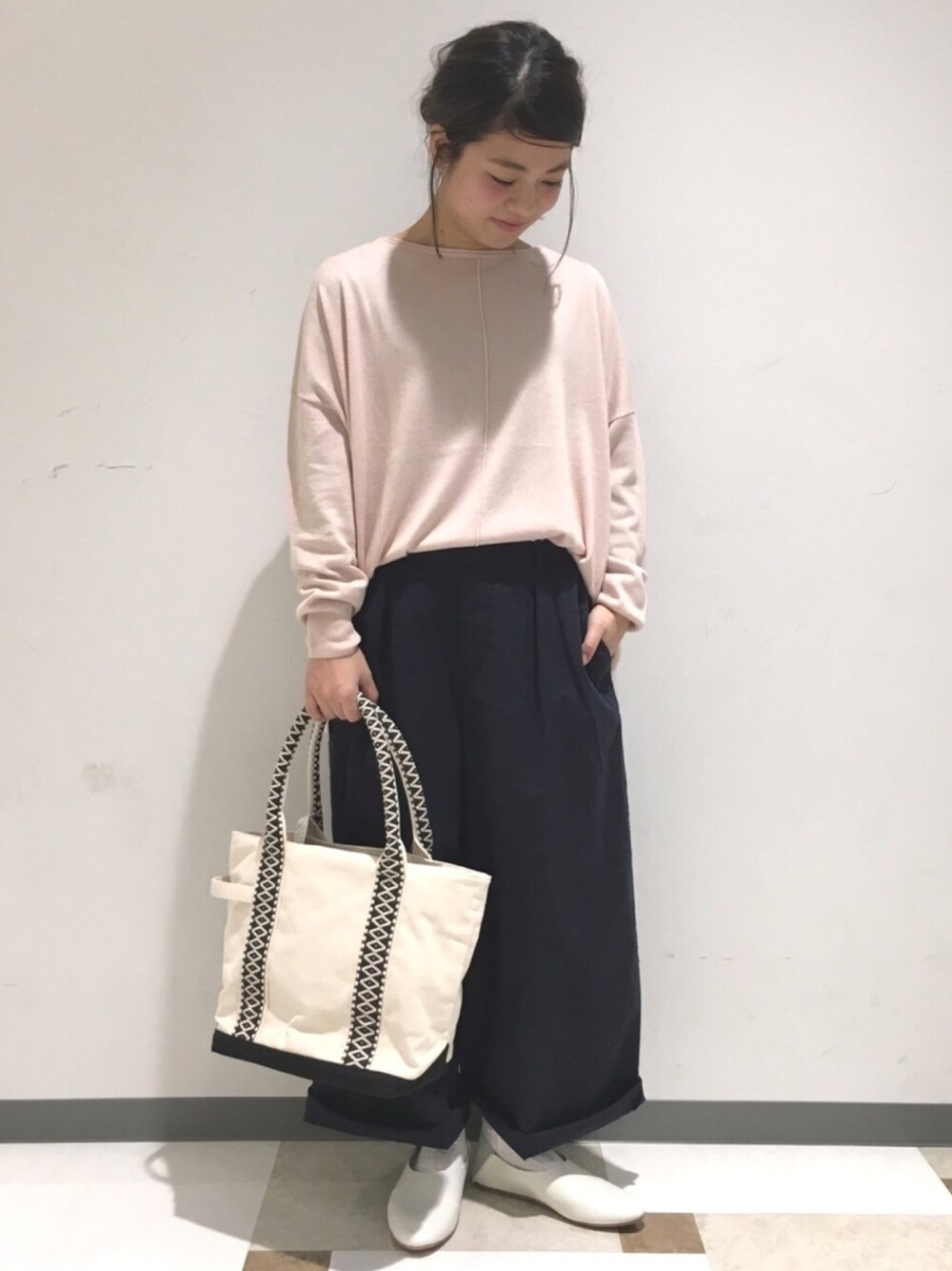 春に一枚あると便利なカラーバリエーション豊富なニットプルオーバー!さらっとした肌触りと落ち感のあるシルエットで、ワイドパンツとの相性バッチリです⭐️ あえてボトムは1サイズ上げてダボっと着てみました👖小物でキレイめにしてみました🙆