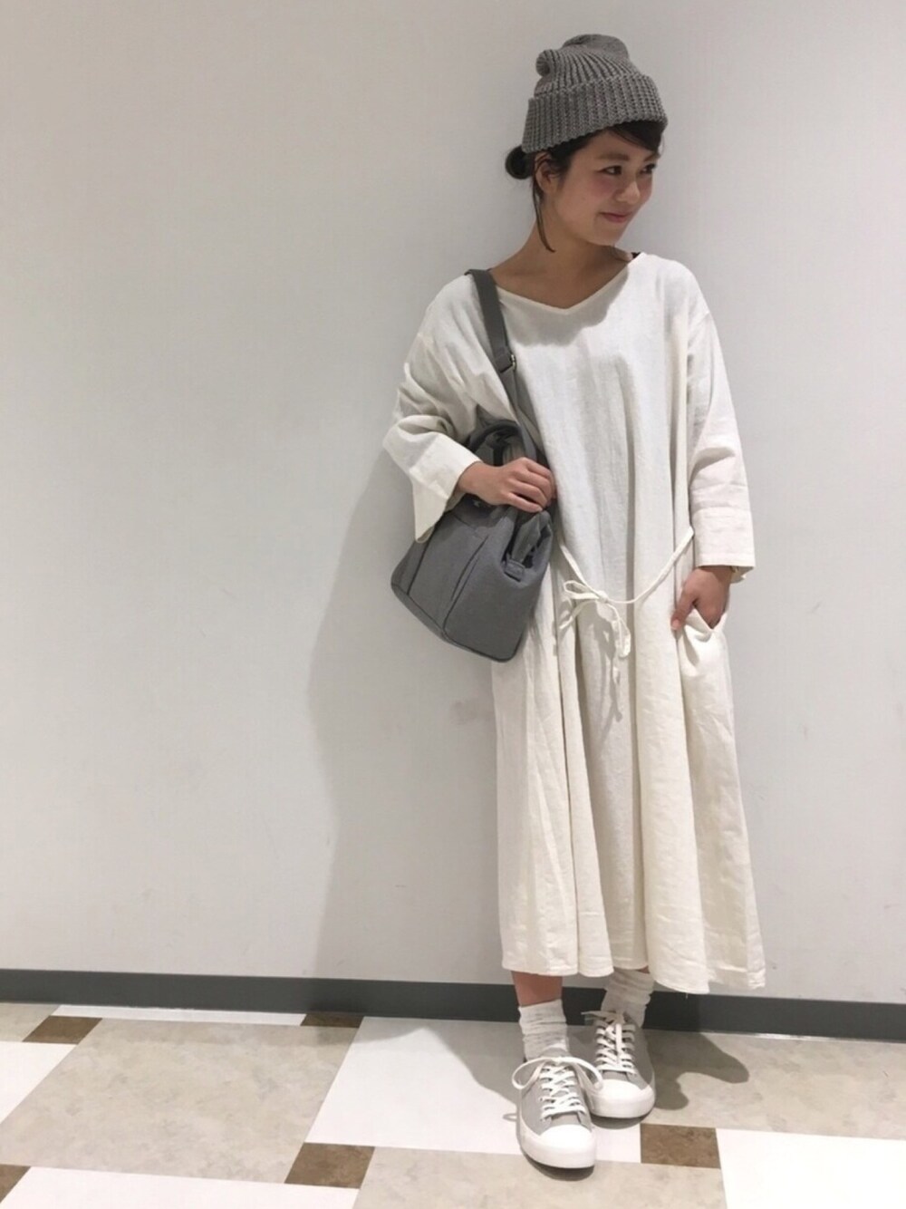 リネン混のサラッとしたシンプルなワンピース!付属の紐を付けたり外したり出来るので、色々な雰囲気で楽しめます⭐️ 低身長の方は1枚もしくは細身のパンツと合わせた方がスッキリ見えます👖✨