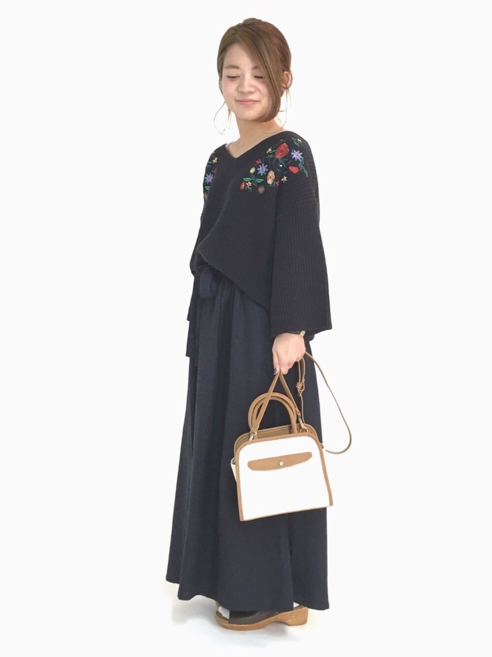 studio CLIP saito(studio CLIP 本部)のニット/セーター「7ゲージ花柄刺繍プルオーバー」を使ったコーディネート