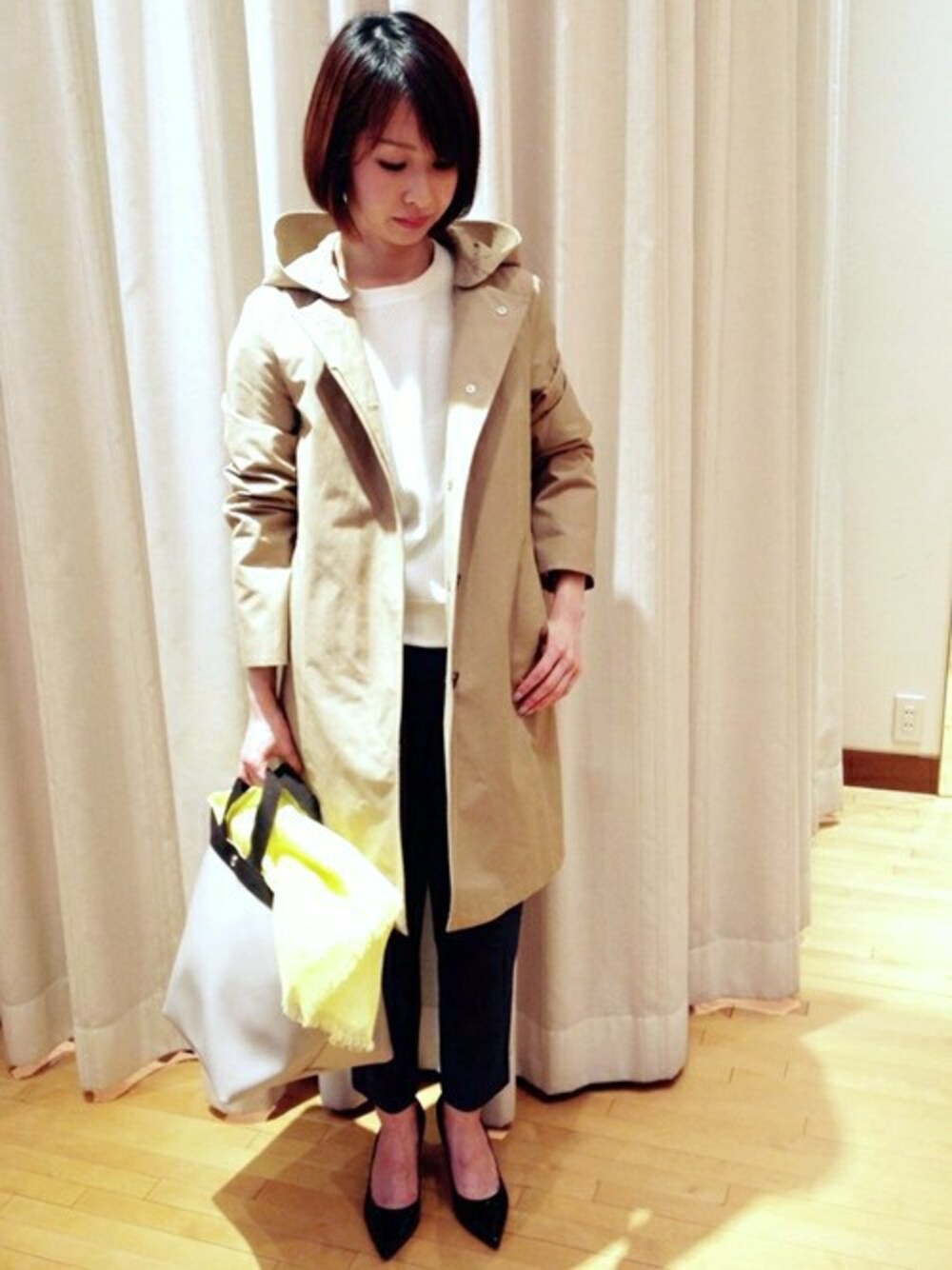 着用のコートは中にキルティングのライナーがついており、フードを取り外すとノーカラーコートとしても着れる優れもの!! 飽きのこないシンプルなデザインで着まわし抜群です♪