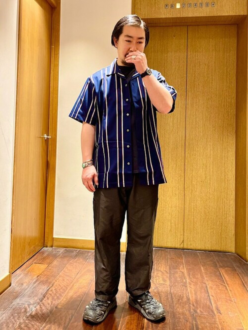 阿久津のシャツ/ブラウス「SHIPS: シルケット ラッセル ストライプ オープンカラー シャツ 22SS」を使ったコーディネート