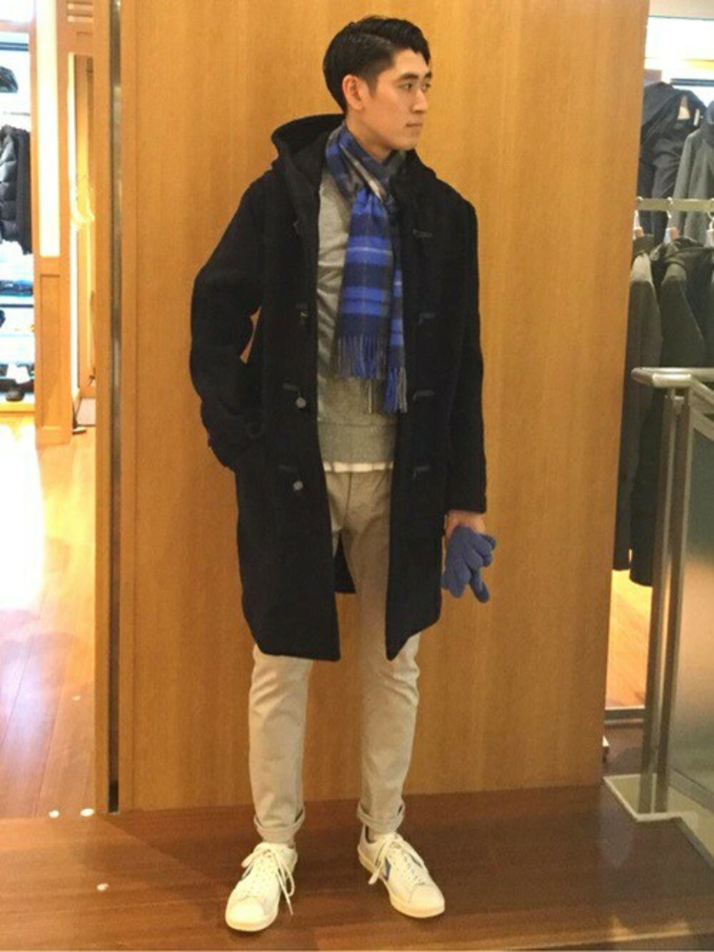 瀬谷のマフラー「BEGG: ラムウール/アンゴラ タータンチェック マフラー」を使ったコーディネート