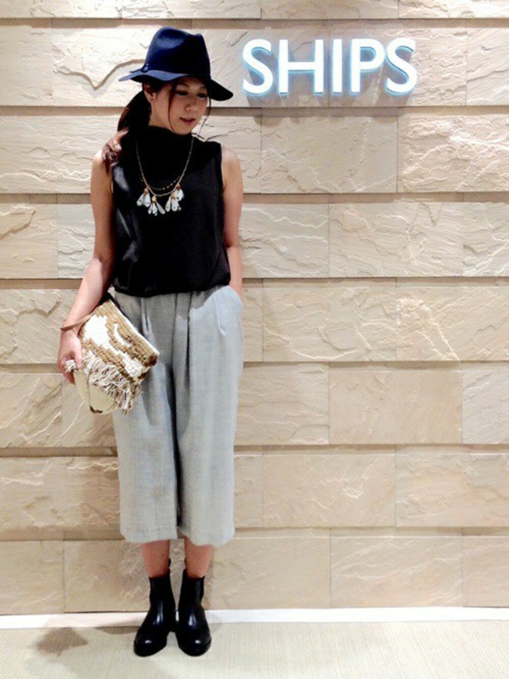 トップスのウエストはブラウジングされているので、スッキリとした着こなしになります。 商品につきましては、下記品番にてSHIPS 池袋パルコ店へお問い合わせください。 ◆トップス:312-44-0008 ◆パンツ:313-14-0251