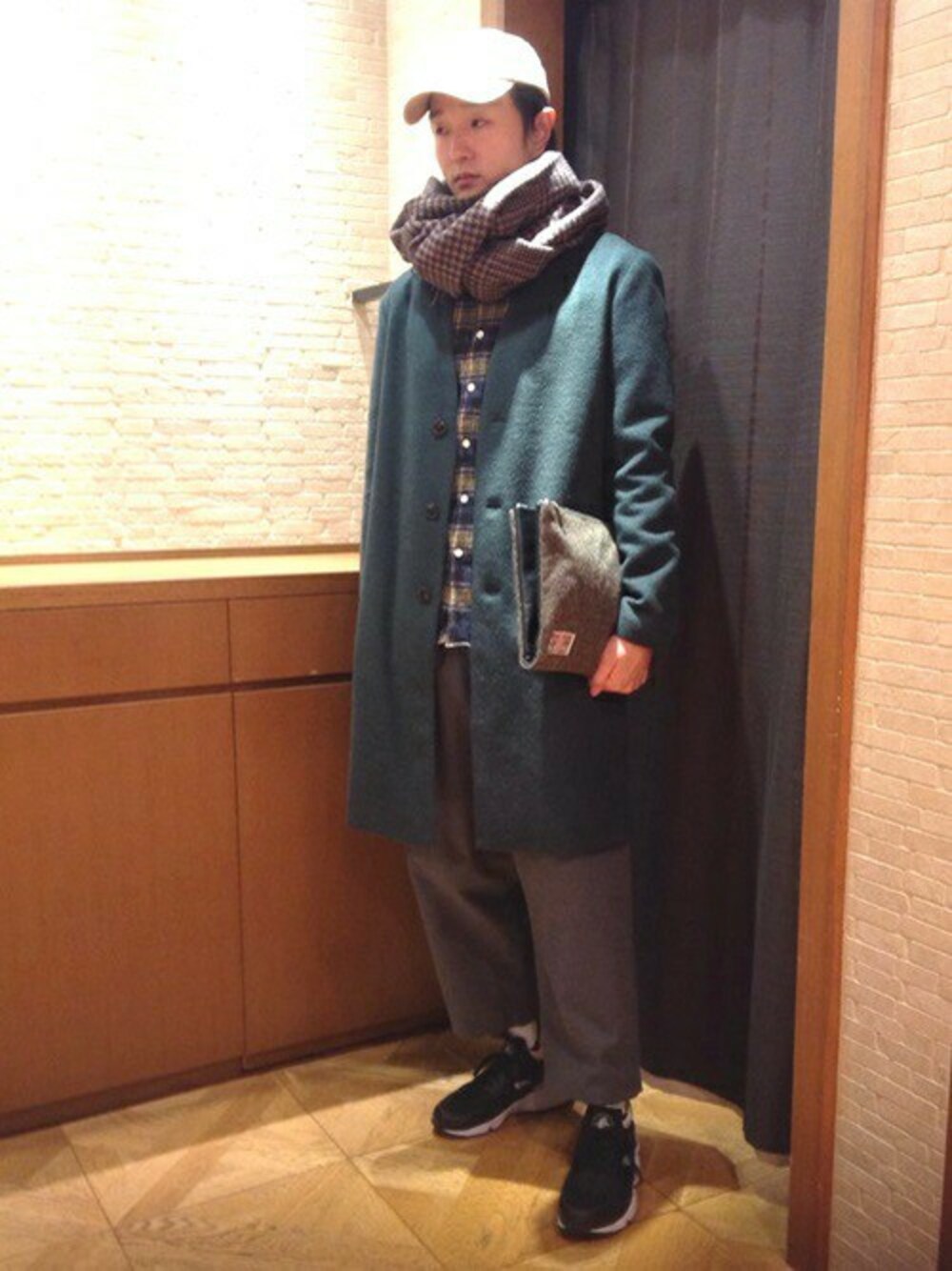 保坂のクラッチバッグ「SHIPS JET BLUE: HARRIS TWEED リバーシブルクラッチバッグ」を使ったコーディネート
