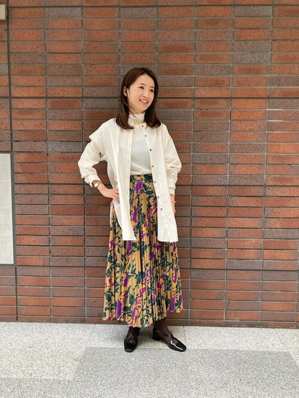 【 着用レビュー 】 身長161cm / 普段サイズ36 ◆着用アイテム: シャツ ◆着用サイズ:36 ◆素材感・着心地: ワッシャー感が特徴で、とてもサラッとした素材感です。 ゆったりしていて、着丈長いですが、スッキリ着れます。 スカート合わせもしやすく、羽織としても重宝します。 ◆着用アイテム: スカート ◆着用サイズ:36size ◆素材感・着心地 通年着用出来るポリエステル素材でご家庭でお洗濯も可能。 軽い素材感なので、快適に着て頂けます。 柄がとても素敵で、コーディネートの主役になります。 ▼シップス神奈川店舗 instagramも更新してます▼ <a href="https://www.instagram.com/ships_kanagawa_official/?hl=ja" target="_blank">@ships_kanagawa_official</a>