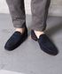 全身ネイビーのコーディネート。 ノータイのシャツでラフに着こなして。