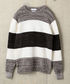 光沢のある梳毛糸とポリエステルモールを交編させたワイドピッチのボーダーニットです。