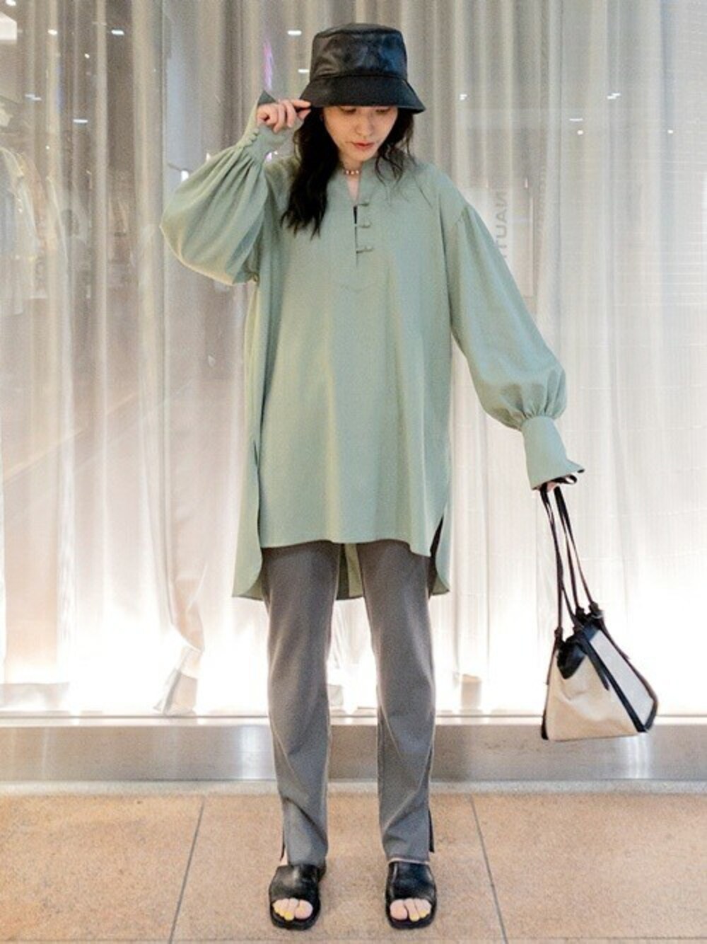 身長:158cm / 普段サイズ:S ◆ブラウス 311-11-1714-6299 着用サイズ:ONE SIZE 【サイズ感】 全体的にゆったりめ。 太ももにかかるくらいの着丈 【素材感・着心地】 とても軽く、さらりとした生地感で着心地が良い。 着丈が長めですが、パンツやスカート さまざまなボトムで着回せそう。 ◆パンツ 363-10-0020-1999 着用サイズ:ONE SIZE 【サイズ感】 ウエストがゴム仕様で リラックスして着用できます。 すっぽりと足首まで隠れる長さ。 【素材感・着心地】 足首のスリットもさりげなく入り、リブの仕様が 足をスッキリと見せてくれます。 ▼阿倍野店 instagramも更新してます▼ @ships_abeno
