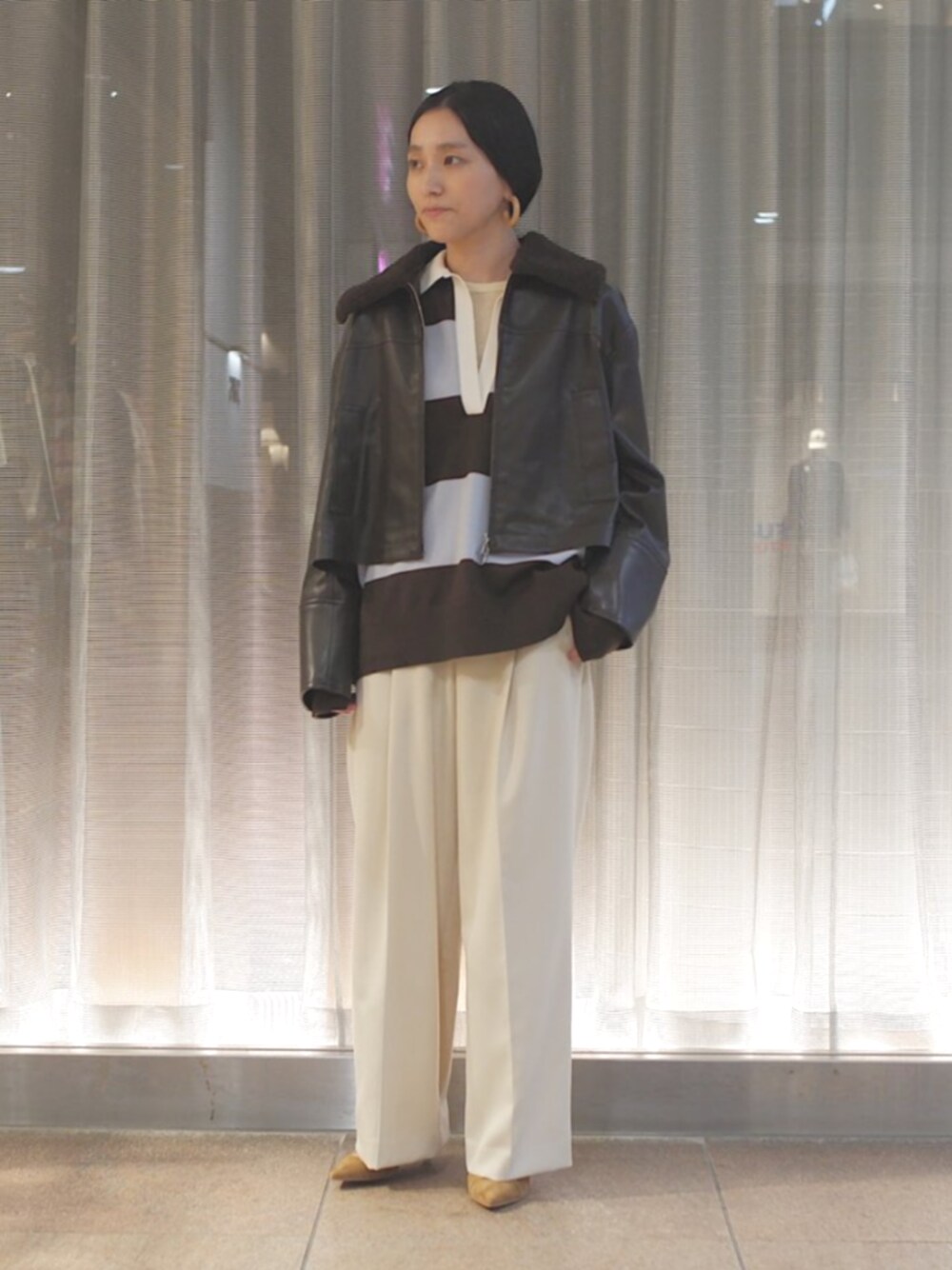 ------------------------------------------------------------------ 【着用レビュー 】 身長:158cm / 普段サイズ:S.M 骨格ナチュラル/イエベ秋 ◆WRAPINKNOT ラガーニット 着用サイズ:ONESIZE サイズ感:ヒップ下くらいの着丈 着心地:オーバーシルエットが 程よい抜け感をだしてくれます。 ニット素材なので、着心地もよく ボトム次第で幅広いコーディネートに 着回しできます。 ◆ボアカラーブルゾン 着用サイズ:ONESIZE サイズ感:着丈短め ゆったりとしたサイズ感 着心地:しなやかなフェイクレザーです とても軽い着心地なので ストレスフリーです。 ------------------------------------------------------------------
