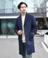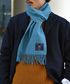 チェスターコートを主にシンプルなコーディネート。ブルーのマフラーで明るさをプラス!
