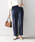 【着用レビュー 】 着用アイテム:パンツ 身長:161cm / 普段サイズ:S/ 着用サイズ:S サイズ感:程よいワイドなシルエット。丈はくるぶしが見える丈です。 着心地:ウエストはバックゴム仕様でストレスフリーな履き心地です。裏地がサラッとしていて肌触りがいいです。