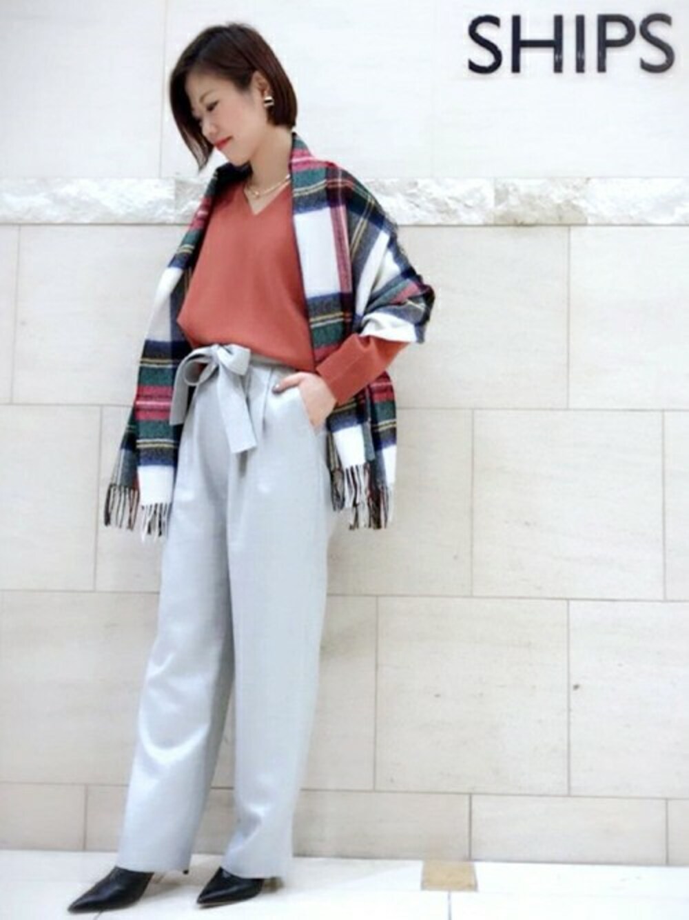 西澤のストール/ショール「JOHN SCOTT:チェックストール◇」を使ったコーディネート