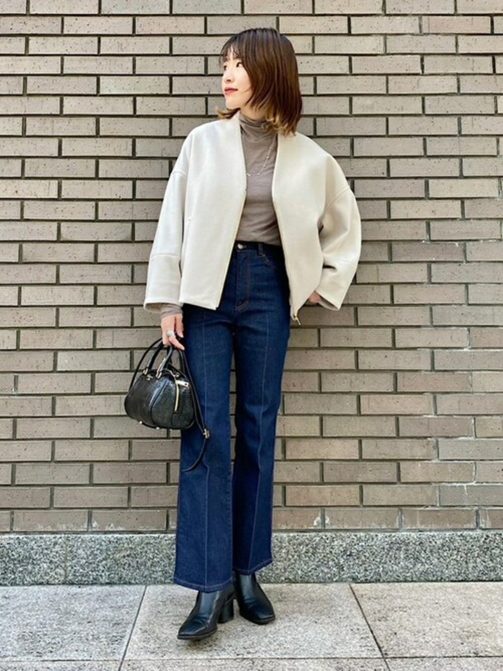 毎年人気のコクーンジップブルゾンを、 大人カジュアルにコーディネートしました デニムもセンタープレスが入っているので カジュアルすぎない印象です^^ ____________________ 身長:160cm / 普段サイズ:34or36 ◆ブルゾン 【着用サイズ】ONE SIZE 【サイズ感】 肩も落ちて、全体的にゆったりとしたサイズ感 着丈は短めなので、ボトムを選ばず着用いただけます 【素材感・着心地】 温かみのある生地感ですがサラッとしており、 とても軽い着心地です! 裏地付きなので風も通しませんし、 ゆったりしてるので中物も選ばず羽織っていただけます ◆タートルカットソー Wai+ 【着用サイズ】ONE SIZE 【サイズ感】 程よくフィット感があり、袖丈も着丈も長めです 【素材感・着心地】 シアーな透け感のあるタートルネックカットソー シルクやカシミヤも入っており薄手ながら保温性◎ レイヤードが楽しくなる一枚です(^^) ◆デニム 【着用サイズ】36 【サイズ感】 ウエスト、ヒップ共にジャストサイズ 膝から下は緩やかに広がるフレアシルエットです 【素材感・着心地】 肌馴染みの良いコットン素材で、 初めはハリがありますがだんだん馴染んできます 通年着やすい、適度な生地の厚み センタープレスが入っていることで、 デニムなのにカジュアルすぎずに着用可能 ▼Instagramも更新してます▼ <a href="https://www.instagram.com/hnc__ships/"target="_blank">@hnc__ships</a>