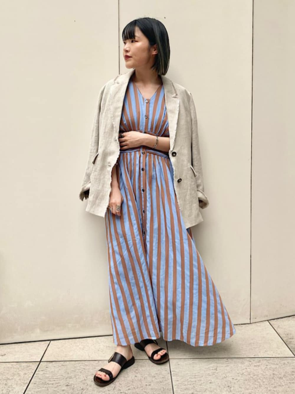 ____________________ ▼Instagramも更新してます▼ <a href="https://www.instagram.com/hnc__ships/"target="_blank">@hnc__ships</a> 新作商品の紹介はもちろん、セールやクーポンなどの お得な情報も発信してます! ぜひご覧くださいませ(^^) ____________________ 身長:160cm / 普段サイズ:34or36 ◆ジャケット 【着用サイズ】ONE SIZE 【サイズ感】 オーバーサイズなジャケットで、 ヒップが隠れるくらいの長めな着丈。 【素材感・着心地】 表地はリネン100%のナチュラルな風合いで 袖裏にのみ裏地がついているので袖通し◎ 縁がフリンジ仕様になっており、 おしゃれ感がグッと高まるアイテムです^^ 夏場の冷房対策にも◎ ◆ワンピース 【着用サイズ】ONE SIZE 【サイズ感】 全体的にゆとりのあるシルエットで、 ウエスト後ろがゴムでかなり楽な着心地です 【素材感・着心地】 表地も裏地もコットン素材で、 柔らかく着心地の良い生地感です^^ 一枚で着てもとても華やかなワンピースは これからの季節のお出かけにぴったりです◎