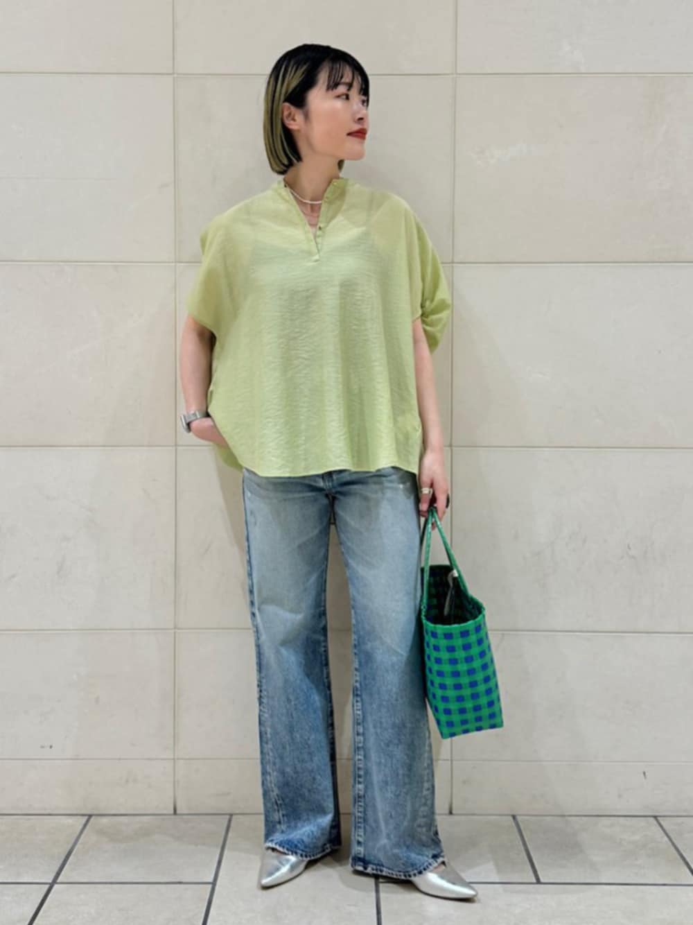____________________ ▼Instagramも更新してます▼ @hnc__ships 新作商品の紹介はもちろん、セールやクーポンなどの お得な情報も発信してます! ぜひご覧くださいませ(^^) ____________________ 身長:160cm / 普段サイズ:34or36 ◆ブラウス 【着用サイズ】ONE SIZE 【サイズ感】 身幅かなりゆったりで、体のラインを拾いません。 フレンチスリーブで二の腕も隠れますし、 着丈も腰回り・ヒップをカバーしてくれる丈感です。 【素材感・着心地】 レーヨンナイロンに少し麻の入った生地で、 ハリや光沢がありつつ、サラッとドライな肌触り。 スラックスやタイトスカートできれいめにはもちろん、 今回の様にデニムやカーゴパンツなどでカジュアルに 合わせるのもかわいいです^^ ◆デニム upper hights別注 【着用サイズ】24 【サイズ感】 23でも入りましたがピタピタすぎたので1サイズアップ。 ワイドとフレアの中間くらいの緩やかなフレアシルエットで スタイルアップと脚長効果もばっちりな一本です。 【素材感・着心地】 コットン100%の柔らかいデニム生地。 一般的なデニムよりも圧倒的に柔らかく、 表面もピーチスキンの様に柔らかく滑らかな肌触りです。 ダメージ加工とヴィンテージ加工で 雰囲気のあるデニムに仕上がっております^^ 夏にTシャツとサラッと着ても決まること間違い無しです!