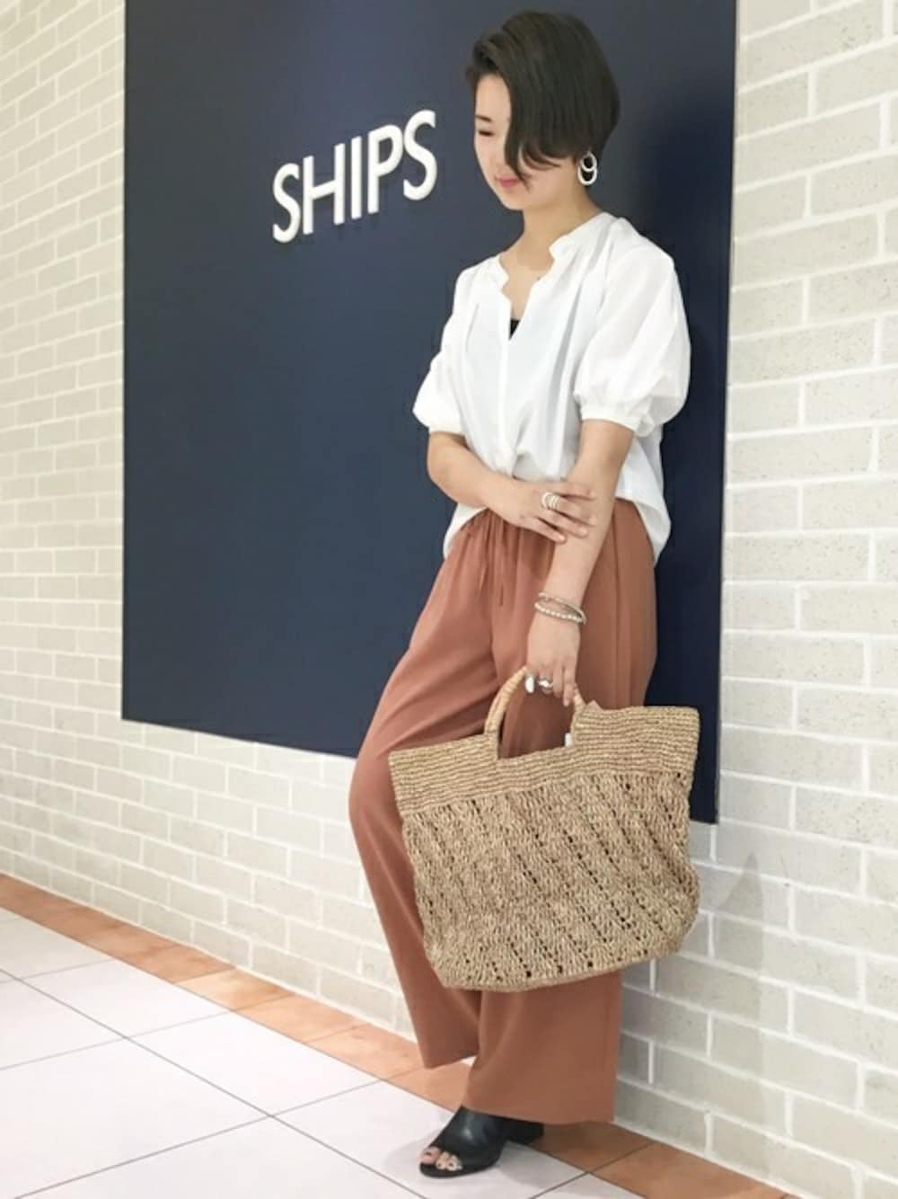 西岡のシャツ/ブラウス「コットンシルクボリュームスリーブスキッパー」を使ったコーディネート