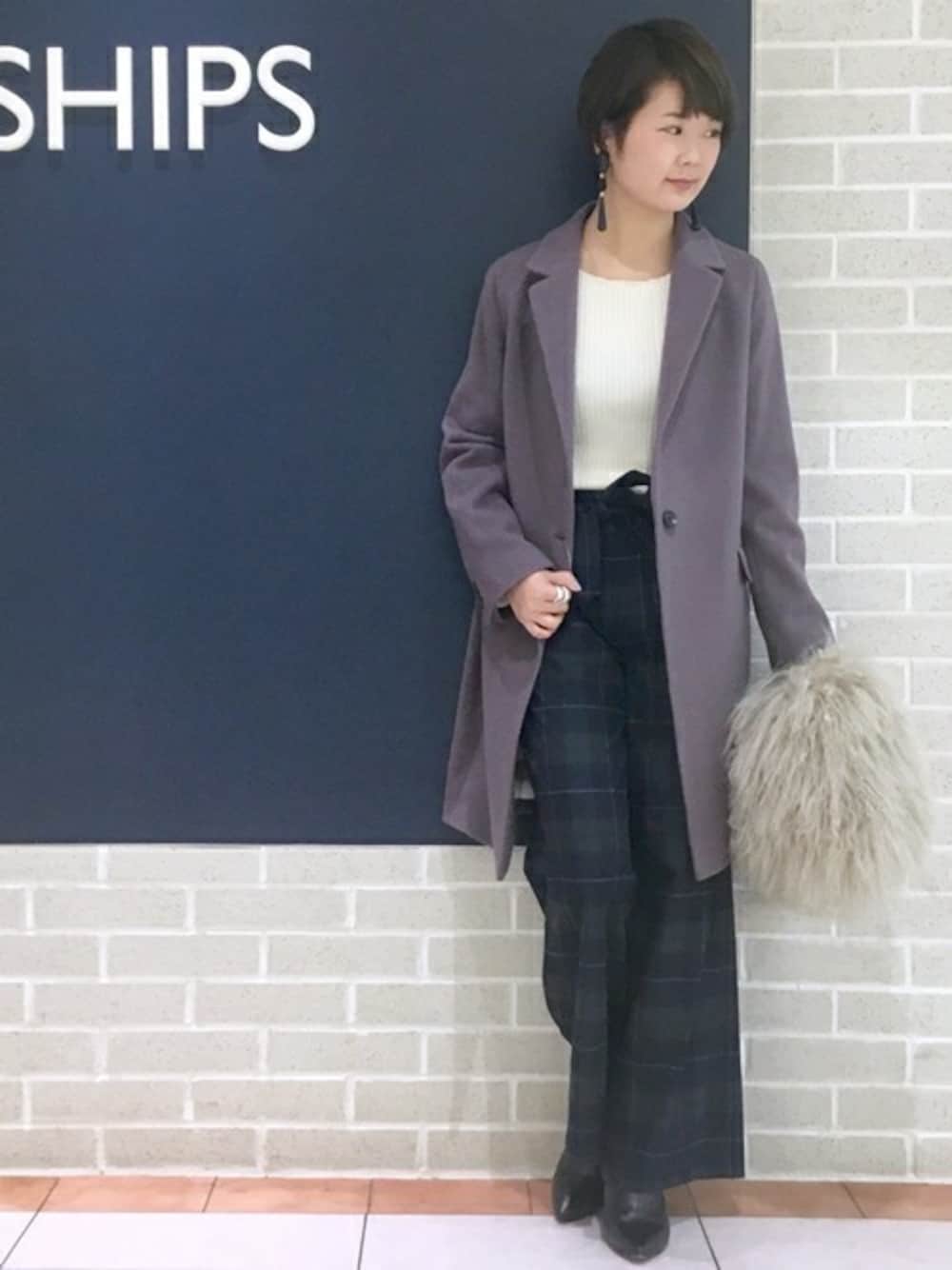 西岡のニット/セーター「ウールリブボートネックプルオーバー◇」を使ったコーディネート