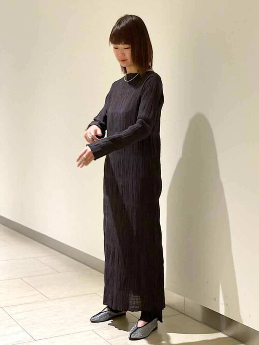 タイトすぎないリブと柔らかい生地感が女性らしさを演出しています。 【着用レビュー 】 着用アイテム:ギャザーワンピース 身長:162cm / 普段サイズ: 36/ 着用サイズ:ONE SIZE サイズ感:足首が見える程度のロング丈です。 素材感:綿99%、ポリウレタン1%のさらっとした柔らかな肌触りです。 着心地:すっきりとしたシルエットですがボディラインが出にくく、生地も肌に馴染む柔らかさで着心地も◎