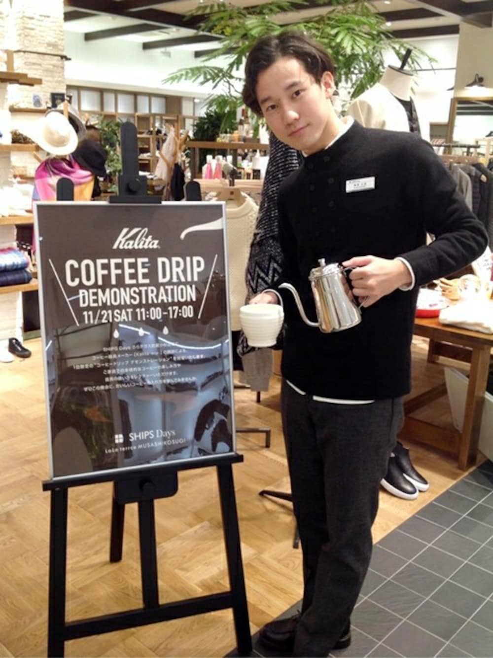 こんにちは! SHIPS Daysららテラス武蔵小杉店です。 お知らせがございます。 コーヒー器具メーカー[Kalita-カリタ-]の講師による、 1日限定の“コーヒードリップ デモンストレーション”を開催いたします。 11/21(SAT)11:00-17:00 是非、お店に遊びに行きてくださいね♪