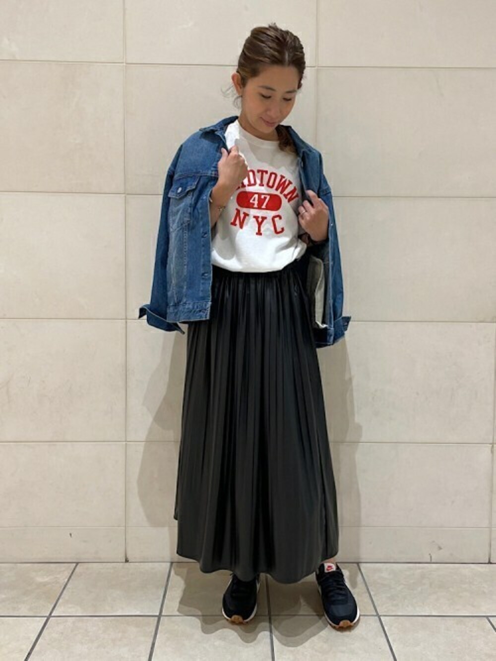 着用アイテム:723-24-0032 レザー ライク プリーツ ロング スカート 身長:162cm /普段サイズS orM /着用サイズ:フリー 今年多くのオシャレ人が注目する「フェイク」というキーワード。 この商品もその一つ。レザーに似せた生地をプリーツスカートに仕上げた一点。 特徴的な光沢が合わせるアイテムをワンランク上級に見立ててくれる、そんな一点です。 カジュアルにもドレスアップにも◎。 着用アイテム:722-31-0030【SHIPS any別注】THE KNiTS: カレッジ ショートスリーブ TEE 身長:162cm /普段サイズS orM /着用サイズ:フリー サイズはオーバー目。ロゴの赤が印象的なTシャツです。 ジャケットのインナーに是非。