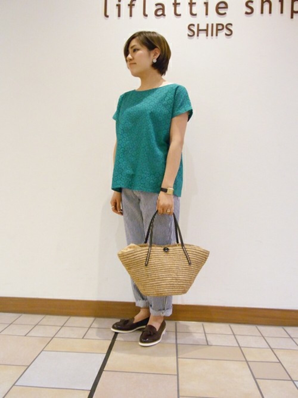 今回紹介するレースブラウスは鮮やかなグリーン。 夏のコーディネートのポイントにいかがですか?