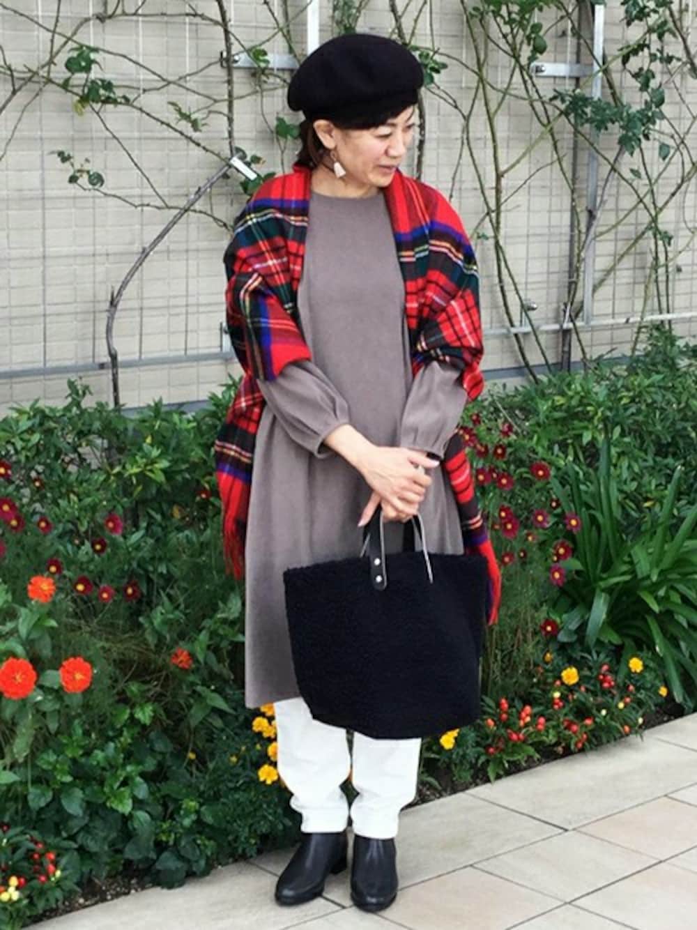 今年も早いものであと1ヶ月と少し。12月は予定を沢山控えている方も多いのでは? お出かけにも大活躍のアイテムを、今回はご紹介します! 一見スウェードにも見える、こちらのワンピース。ポリエステルを起毛させ、肉厚な感じに仕上げています。 今回は重ね着していますが、1枚でもモチロンOK!共布ベルトも付いているので、ウエストマークするとまた違った着こなしも楽しめます。 白いパンツはコーデュロイ、畝の細いタイプなので重ね履きにも適していますよ。 ベレー帽で甘過ぎないコーディネートに、首元はスッキリ髪を纏めて。 ストールはイギリスのブランド、GlenPrinceのもの。カシミアは肌触りもバツグン、お出かけの気分もグッと上がること間違いなしです。 アクセントのバッグ、TEMBEAは、人気のボアトート再入荷しました! 足元はBiancaのサイドジップのショートブーツ。両サイドにジップが付いているので、履きやすい形です。 関東では初雪も降り、いよいよ冬本番。年末のイベントの支度に、是非ご来店ください!