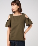 落合のTシャツ/カットソー「Khaju:オフショルダーフリルトップス」を使ったコーディネート
