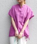 【着用レビュー 】 着用アイテム:ブラウス 身長:163cm / 普段サイズ:38 / 着用サイズ onesize サイズ感:ゆったりとしたシルエット裾が絞れるため着丈の調節出来ます。 素材感: リネン特有のチクチク感がありません。 着心地: 軽くて通気性抜群。蒸し暑い時期でも涼しく着ていただけます。