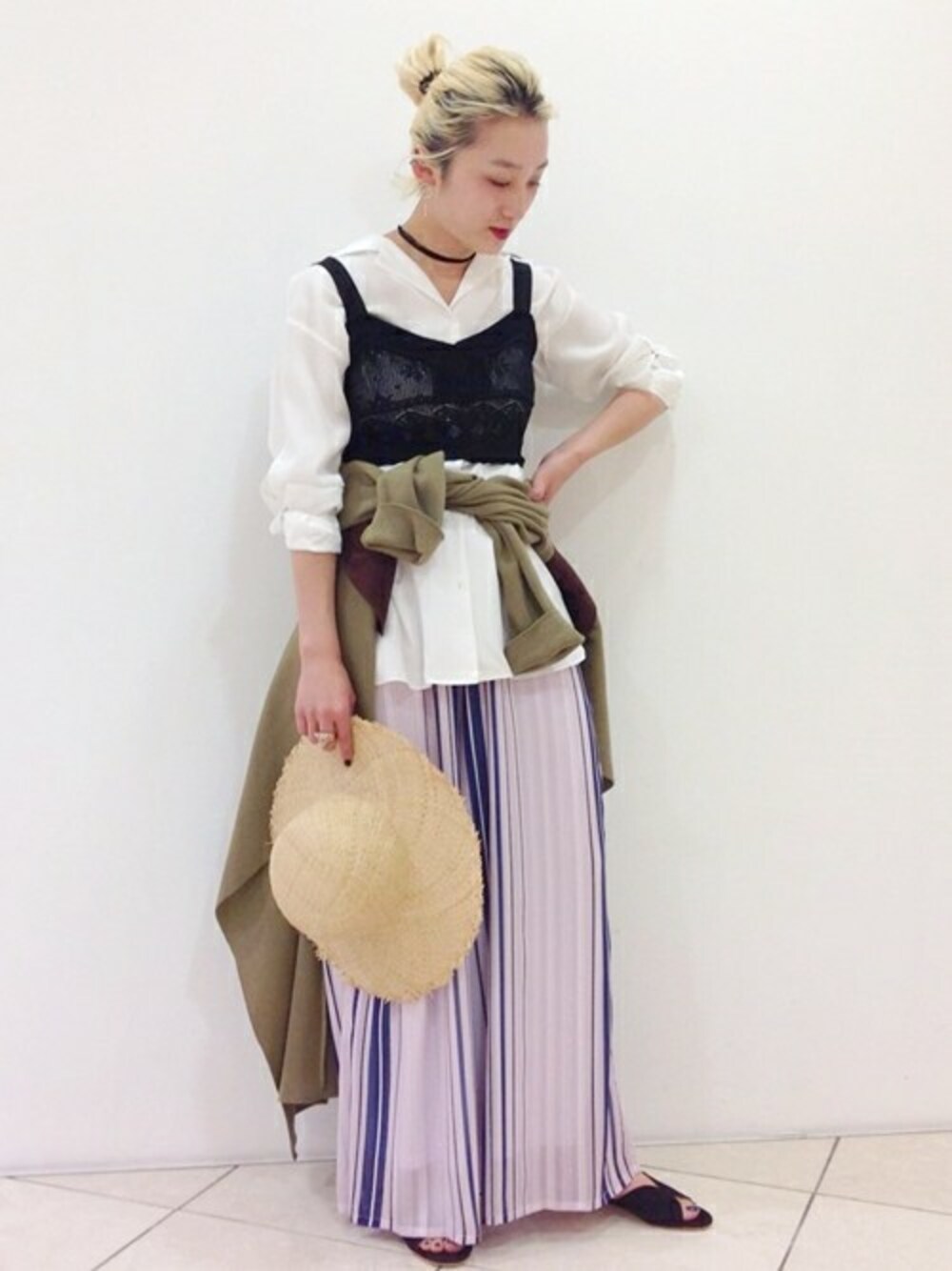 箕山(SHIPS なんばパークス店(SHIPS for womens))のその他パンツ「Khaju:ストライプシフォンパンツ◇」を使ったコーディネート