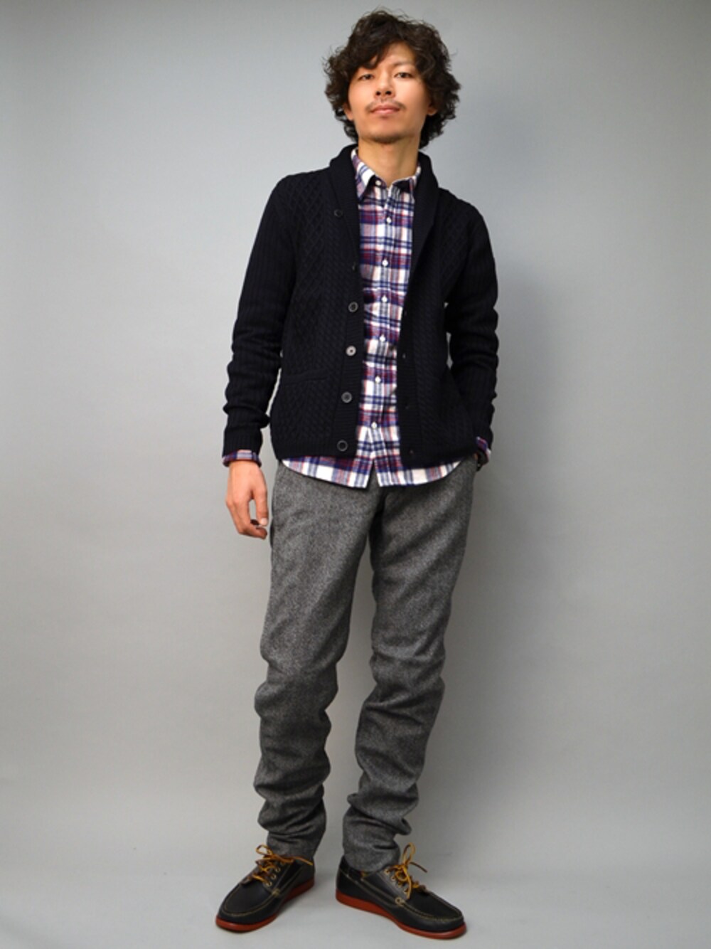 萩原(SHIPS MEN)のカーディガン/ボレロ「SC: ランダムアラン ショールカーディガン」を使ったコーディネート