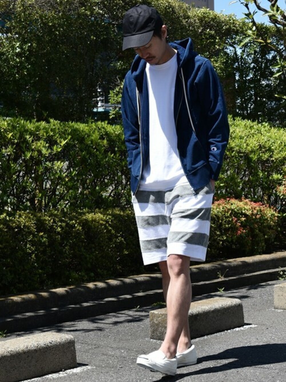 暖かくなってきたので、一足早くショーツ合わせのコーデ。 今年も大人気のchampion別注シリーズは、是非チェックいただきたいアイテムです。