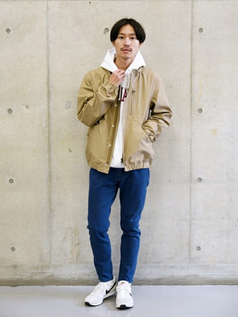 2021年春夏の新作フードブルゾン。 ボリュームのあるフードがポイントのショートモッズデザインは、絶妙なタイトサイジングに仕上げることで、スラっと細く見えるシルエットを構築できます。 フードを外してノーカラーブルゾンとしても着用できます。 【着用レビュー】 着用アイテム:ブルゾン 身長:170cm/体重:52kg/体型:やせ型/普段サイズ:M/着用サイズ:L サイズ感:肩、身幅、アームホールと窮屈に感じることなく着ることができました。 素材感:光沢感のあるバックサテン。 着心地:袖口や裾のゴムシャーリングで、羽織った際のフィット感が良く、快適に着れました。 着用アイテム:パーカー 身長:170cm/体重:52kg/体型:やせ型/普段サイズ:M/着用サイズ:M サイズ感:ややゆったりめのサイズ感。 素材感:柔らかめの生地感。 着心地:良い。プリントがコーディネートの良いアクセントになります。 着用アイテム:パンツ 身長:170cm/体重:52kg/体型:やせ型/普段サイズ:M/着用サイズ:M サイズ感:かなりタイトでピタッとなるスキニーシルエット。ウエストはドローコードで調節できます。 素材感:ウォッシュのかかったデニム素材。 着心地:ストレッチ入りで楽に穿け、丈もジャストでした。 着用アイテム:シューズ 身長:170cm/体重:52kg/体型:やせ型/普段サイズ:26cm/着用サイズ:8 幅:普通 甲:普通