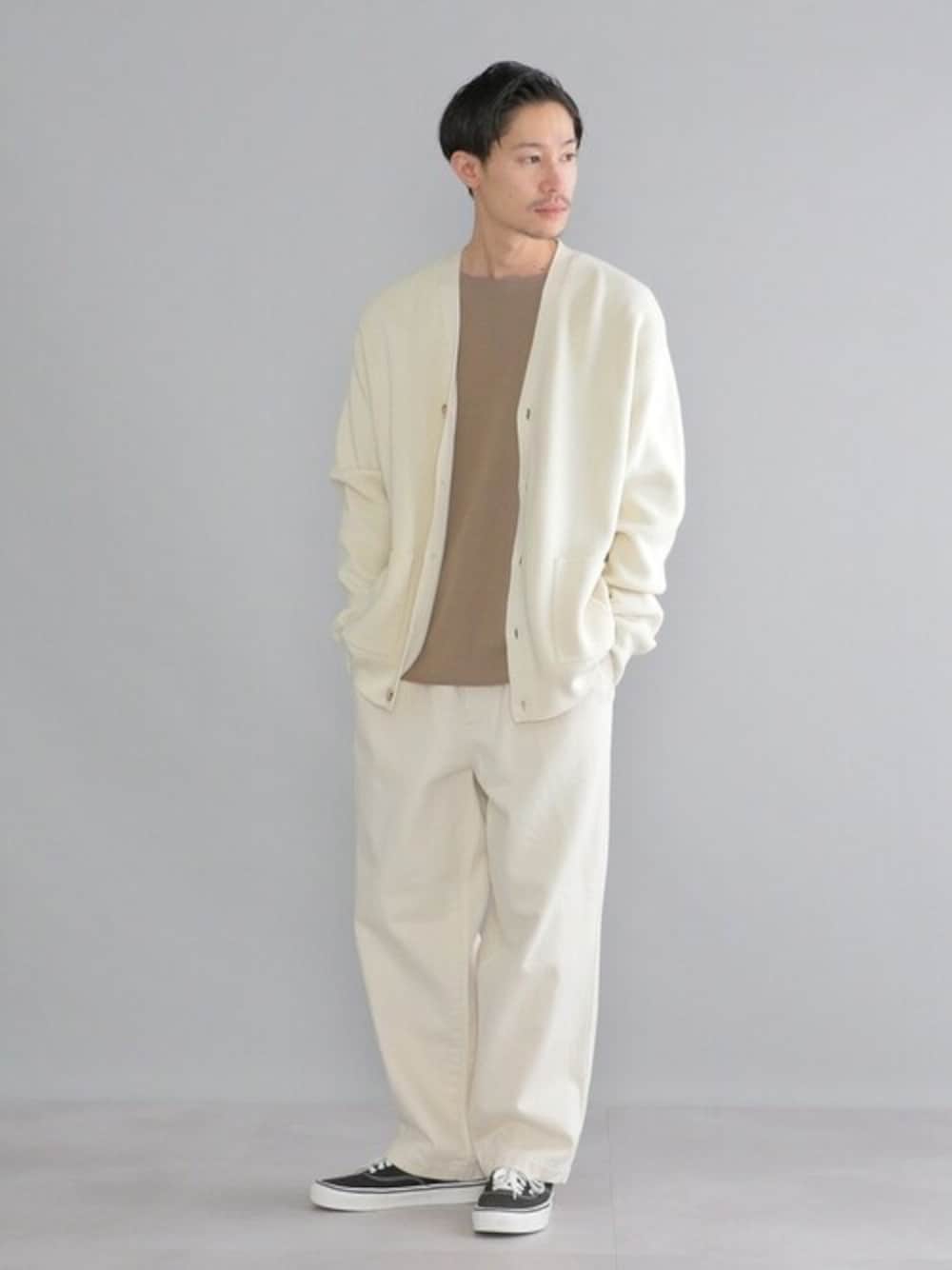 いつもご覧いただきありがとうございます。 春らしいナチュラルなカラーでコーディネート。 【着用レビュー】 着用アイテム:カーディガン 身長:170cm/体重:52kg/体型:やせ型/普段サイズ:M/着用サイズ:L サイズ感:ゆったりめのサイズ感。インナーにパーカーも着れるサイズ感でした。 素材感:度詰めで高級感のある生地。 着心地:ゆったり着ることができ、着心地良いです。 着用アイテム:カットソー 身長:170cm/体重:52kg/体型:やせ型/普段サイズ:M/着用サイズ:L サイズ感:ゆったりめのサイズ感。 素材感:Tシャツ生地とは違う、高級感のあるニット生地。 着心地:丁度良い厚みで着心地良いです。 着用アイテム:パンツ 身長:170cm/体重:52kg/体型:やせ型/普段サイズ:M/着用サイズ:M サイズ感:ゆったりシルエット。裾はジャストなレングスでした。 素材感:岡山のデニム織機で織り上げたこだわりの生地。 着心地:ウエストは総ゴム仕様で楽チンな穿き心地。ワイドシルエットですが、非常に上品な印象で穿けます。 着用アイテム:シューズ 身長:170cm/体重:52kg/体型:やせ型/普段サイズ:26cm/着用サイズ:8 幅:普通 甲:普通