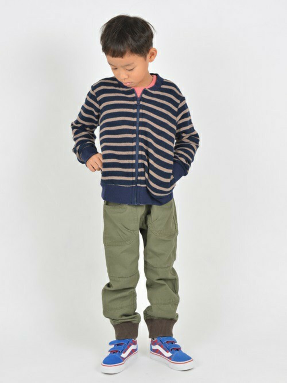 りっくんのパーカー「SHIPS KIDS:ボーダー ジップアップ ロングスリーブ(kids)」を使ったコーディネート