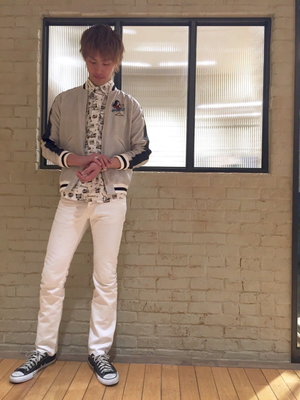 SHIRATO(HYSTERIC GLAMOUR玉川髙島屋店)のブルゾン「NAKED TRUTH刺繍 裏総柄リバーシブルスカジャン」を使ったコーディネート