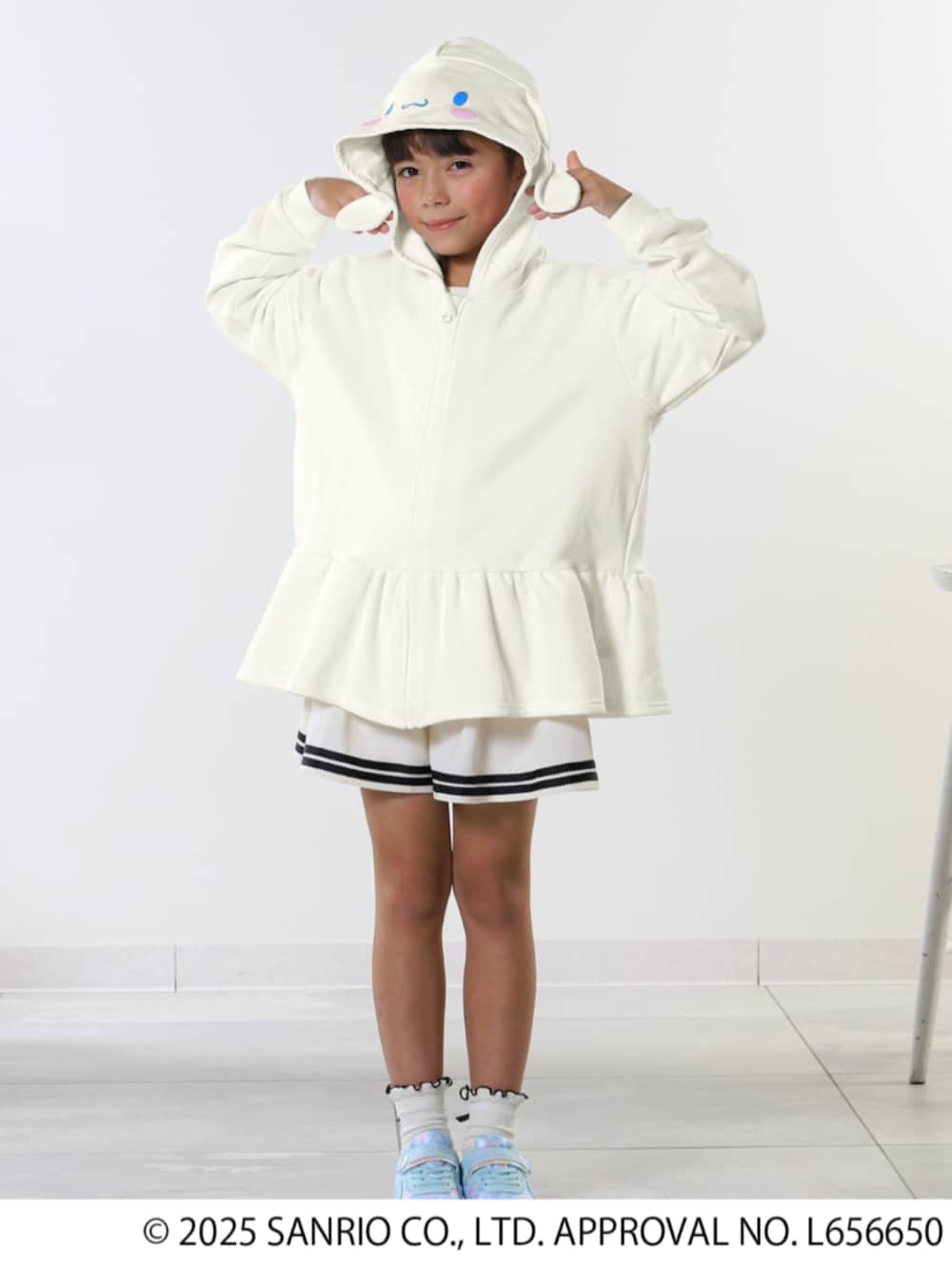 大好きなキャラクターデザインのパーカーが主役! オールホワイトの清潔感あるスタイルは まわりからも注目されそう♪