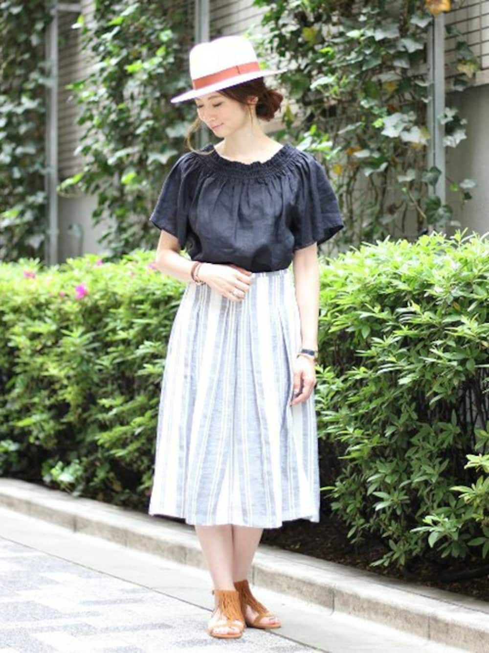 Yuko(Spick & Span 千葉ペリエ店)のスカート「【O'NEIL OF DUBLIN】ストライプソフトプリーツスカート◆」を使ったコーディネート
