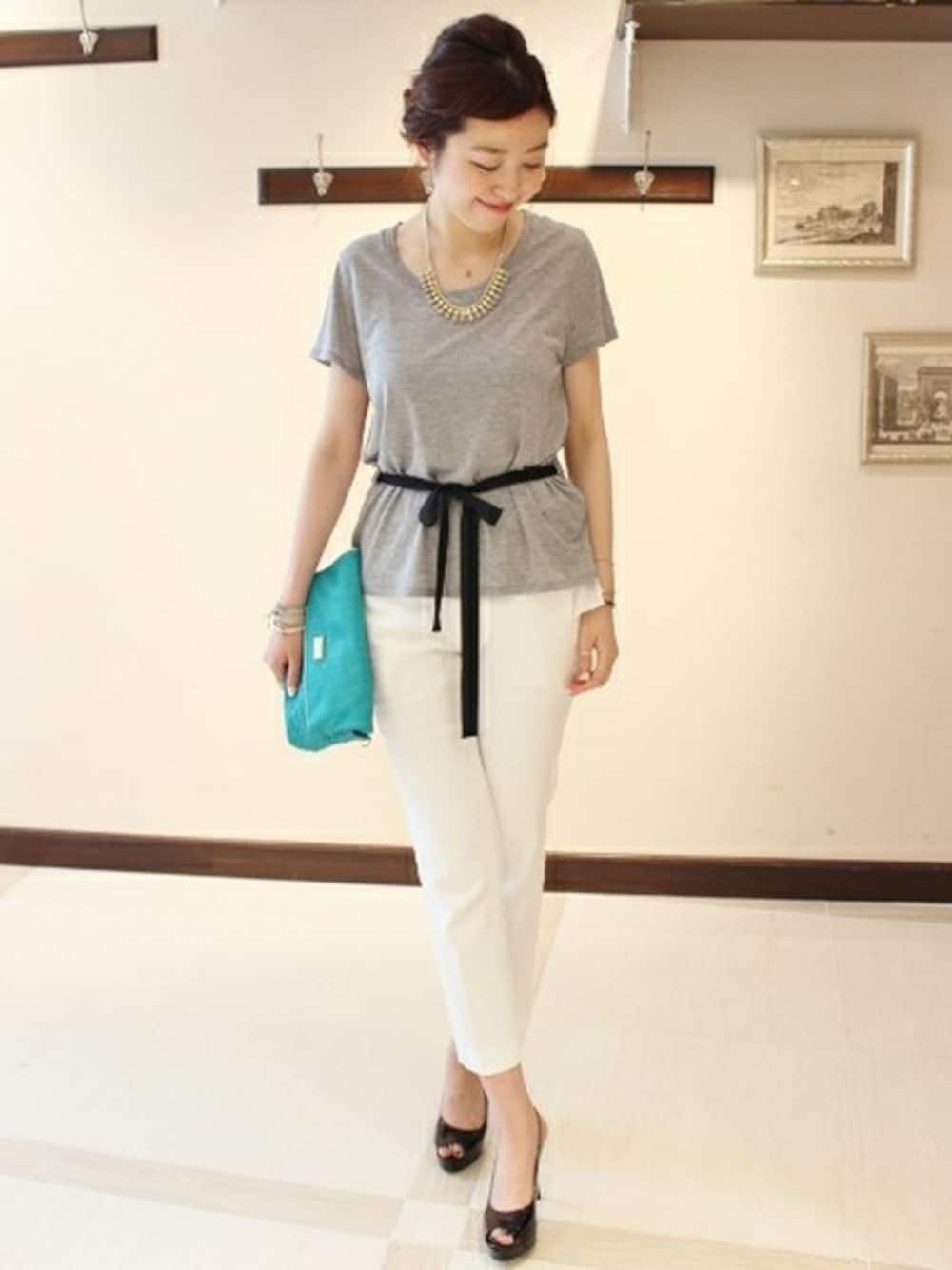 ベーシックなTシャツにフロントリボンと裾フリルのデザインをプラスして、カジュアルフェミニンに仕上げたプルオーバー。 ボトムスには、スキニーパンツを合わせても◎