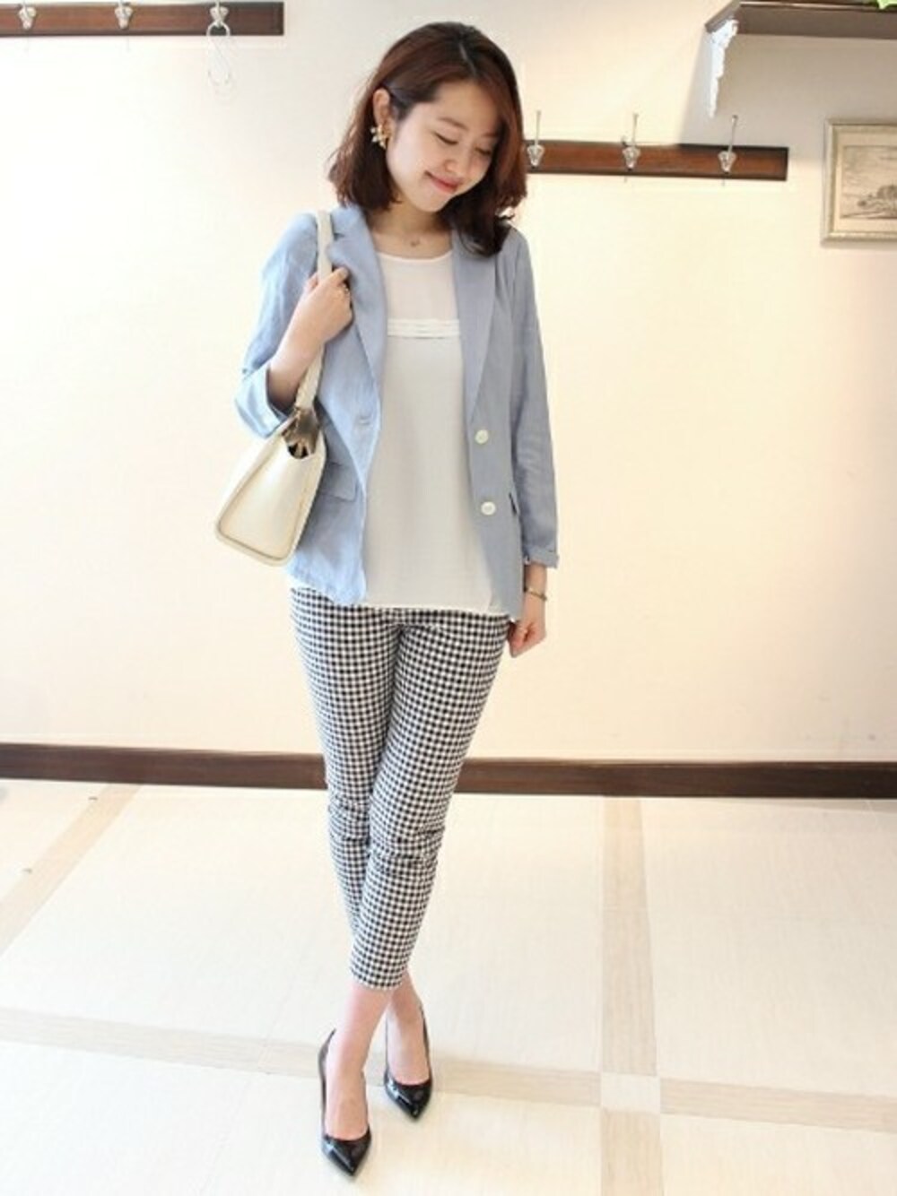 ホワイトブラウスにプラス!ジャケットにリネンを取り入れて軽やかなイメージ♪