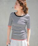 Press marieのトップス「≪予約≫リネンリブボーダーハンソデ◆」を使ったコーディネート