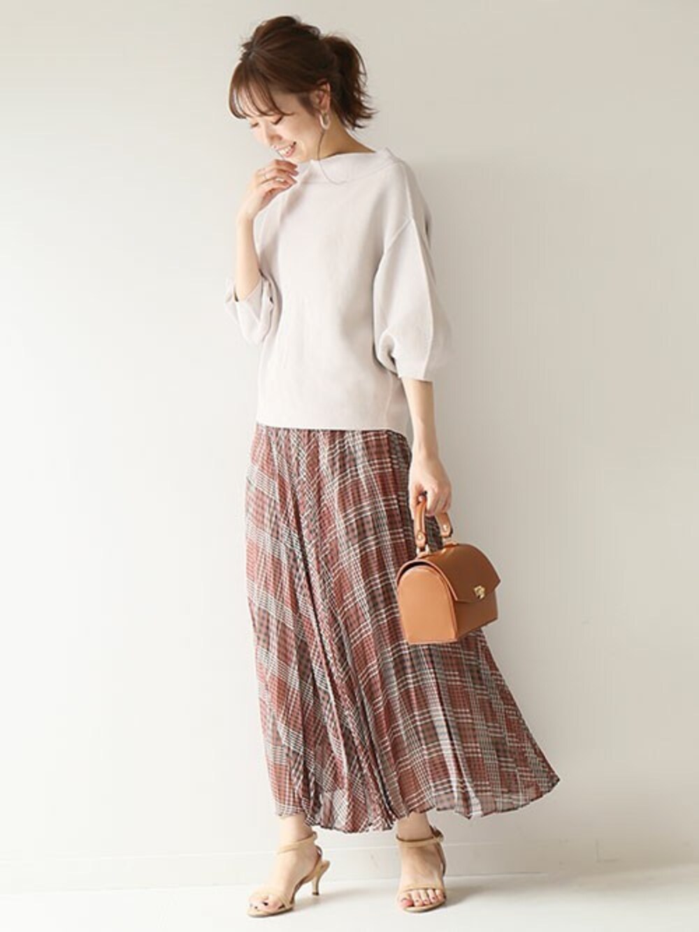 さく*のスカート「アコーディオンチェックプリーツスカート◆」を使ったコーディネート